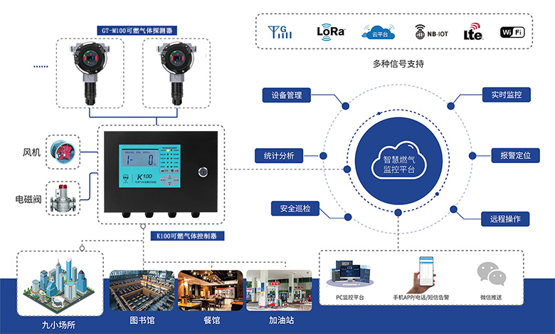 優(yōu)倍安工商業(yè)燃?xì)獍踩O(jiān)測(cè)系統(tǒng),充分利用信息通信技術(shù),通過(guò)現(xiàn)場(chǎng)安裝智能監(jiān)測(cè)終端由終端產(chǎn)品實(shí)時(shí)監(jiān)測(cè)感知被監(jiān)測(cè)數(shù)據(jù)變化,使用有線或無(wú)線等通訊方式,將監(jiān)測(cè)數(shù)據(jù)傳輸至控制器,一旦監(jiān)測(cè)數(shù)據(jù)達(dá)到預(yù)設(shè)報(bào)警值,則會(huì)發(fā)出對(duì)應(yīng)的報(bào)警信息,提醒值守人員及時(shí)處理。